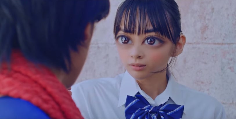 Anime eyes might look OK in, well, anime, but on real-life humans, they look freaky as hell. Previously, we saw giant anime eyes brought to life with Robert Rodriguez’s Alita: Battle Angel. This time around, big eyes are back, but as a pointed play on anime conventions like schoolyard renai (love)—and more importantly, a way…