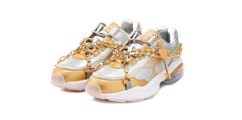 This isn’t the first pair of One Piece shoes from Puma. The first collab was based on the Straw Hat Pirates ship the Thousand Sunny. The latest one, pictured, is treasure hunt themed. The Thousand Sunny-themed Cell Endura do look like the ship, I guess. The latest shoes are very shiny! And there are jingly chains…