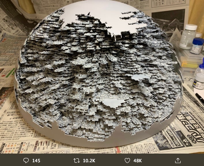 On July 5, 2015, Star Wars fan and Twitter user C3poC3 started working on his Death Star II diorama. Now in 2019, he’s not done. As you can see, he is currently painting the Death Star II’s northern hemisphere. The level of detail is staggering. The model measures 50 centimeters in diameter. Here are some…