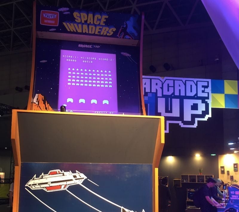 Towering over the Taito booth at this year’s Tokyo Game Show is an enormous Space Invaders cabinet. Just look. It’s huge! The cabinet isn’t open for demos. I asked a representative at the booth if it’s possible to play the cabinet, and he told me that while it’s not open for demos because its height…