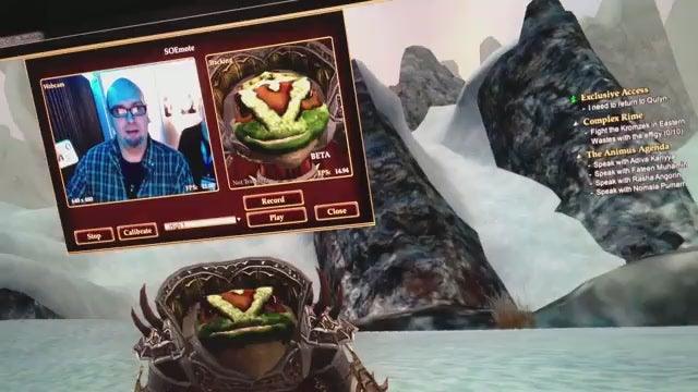 Earlier this week Sony Online Entertainment revealed its new SOEmote technology, which enables EverQuest 2 players to map their facial expressions and mouth movements to their in-game character. This creeped many people the fuck out. I just had to try it. So I met up with the company’s resident frog and king of all things…