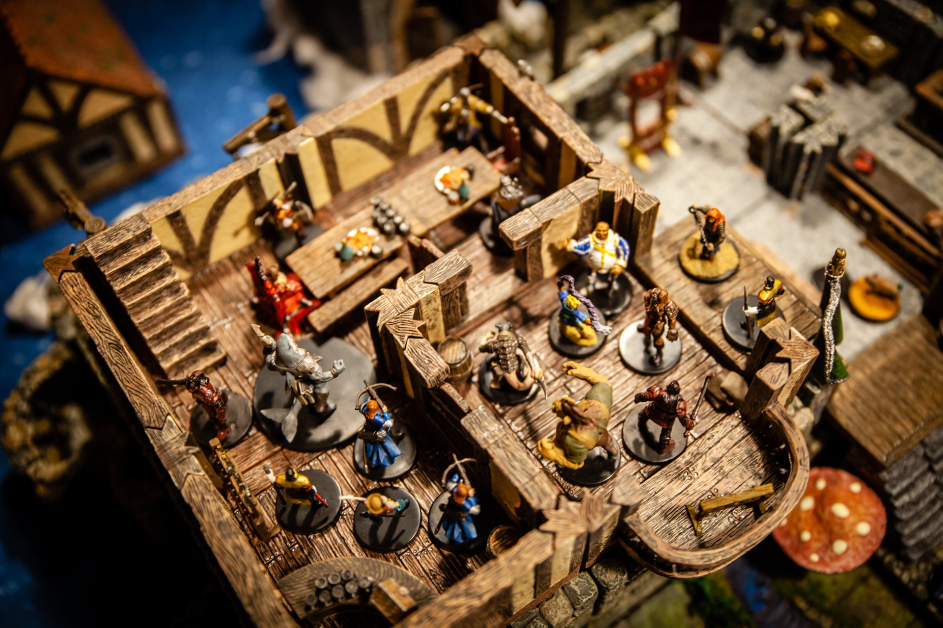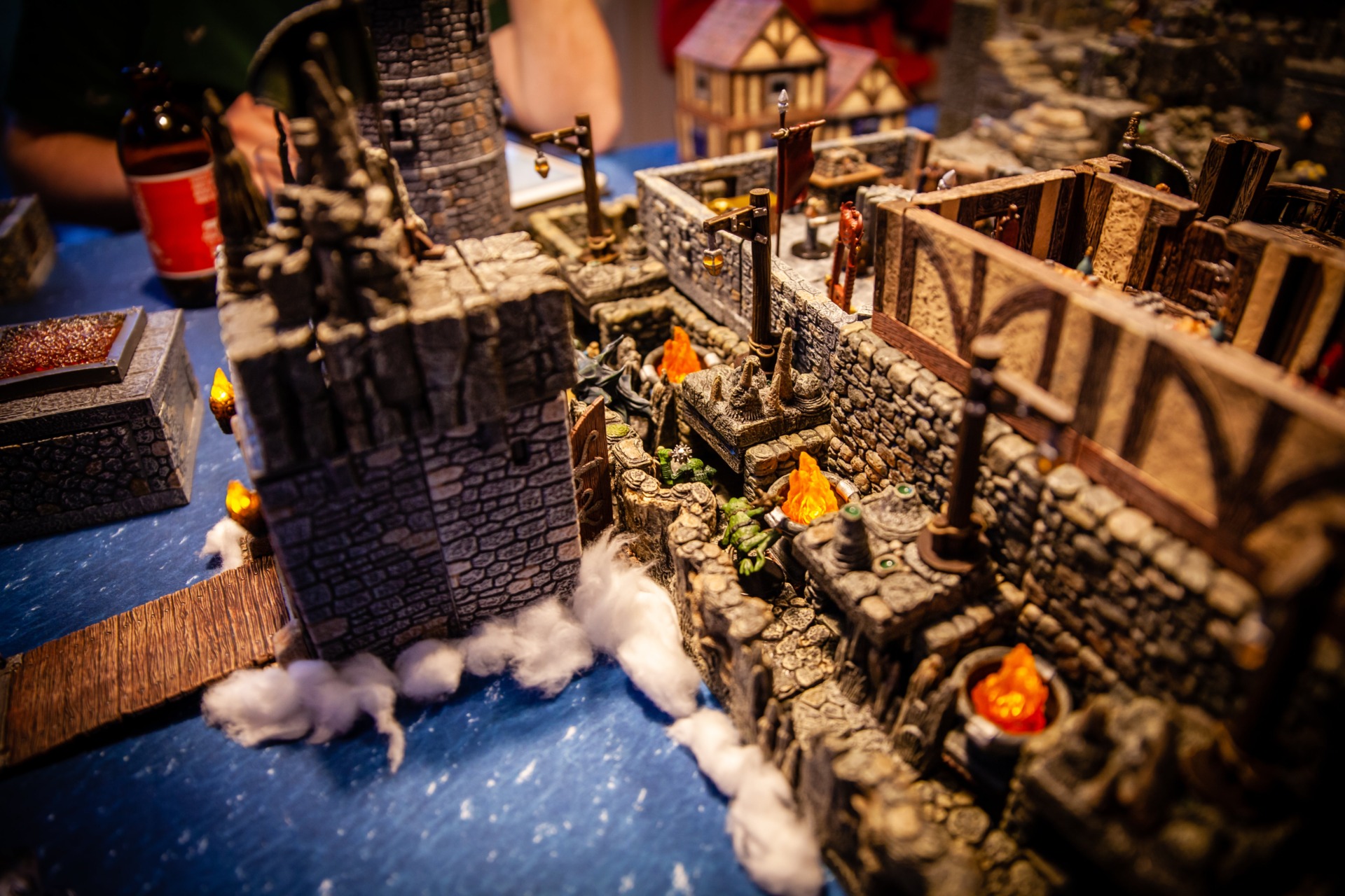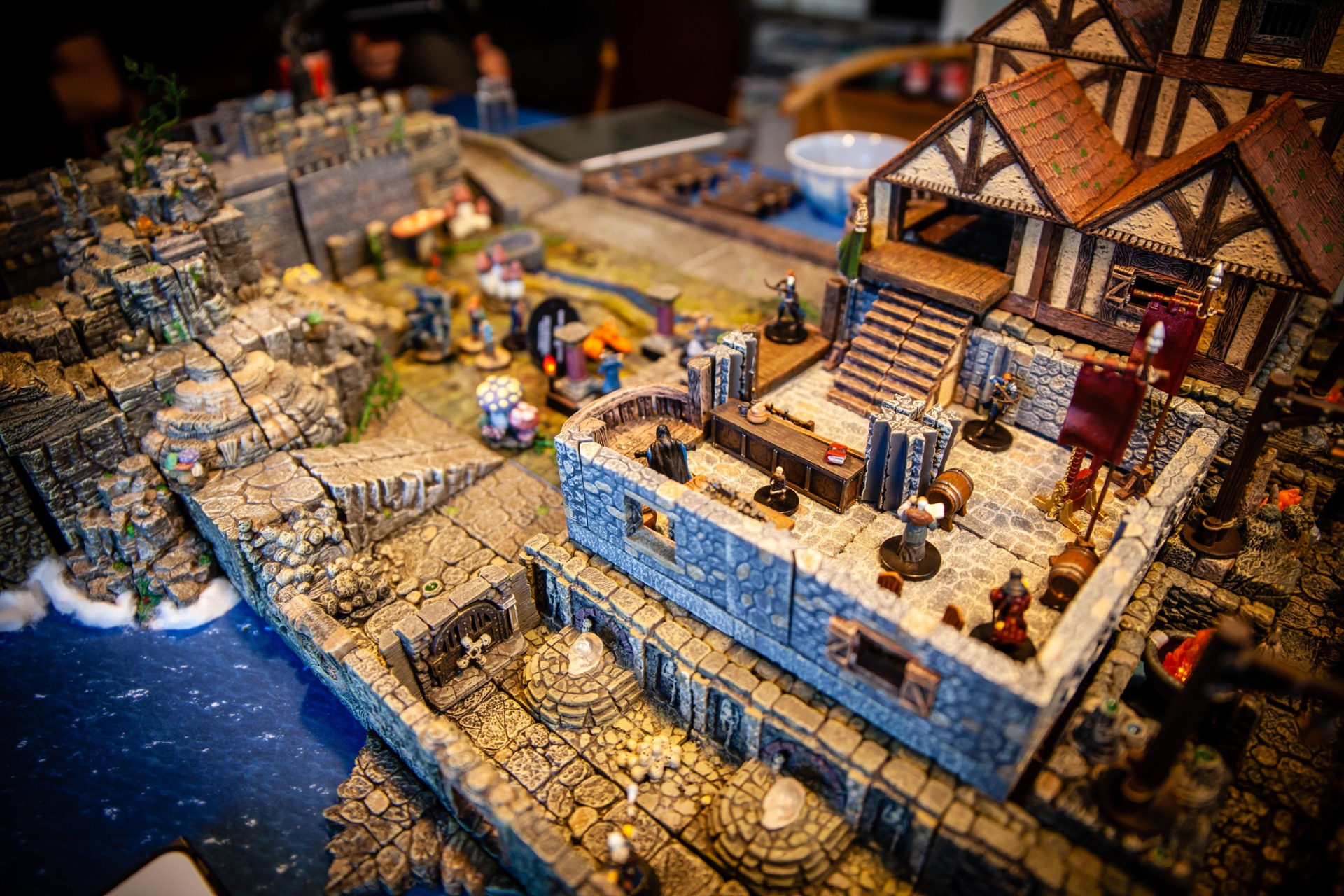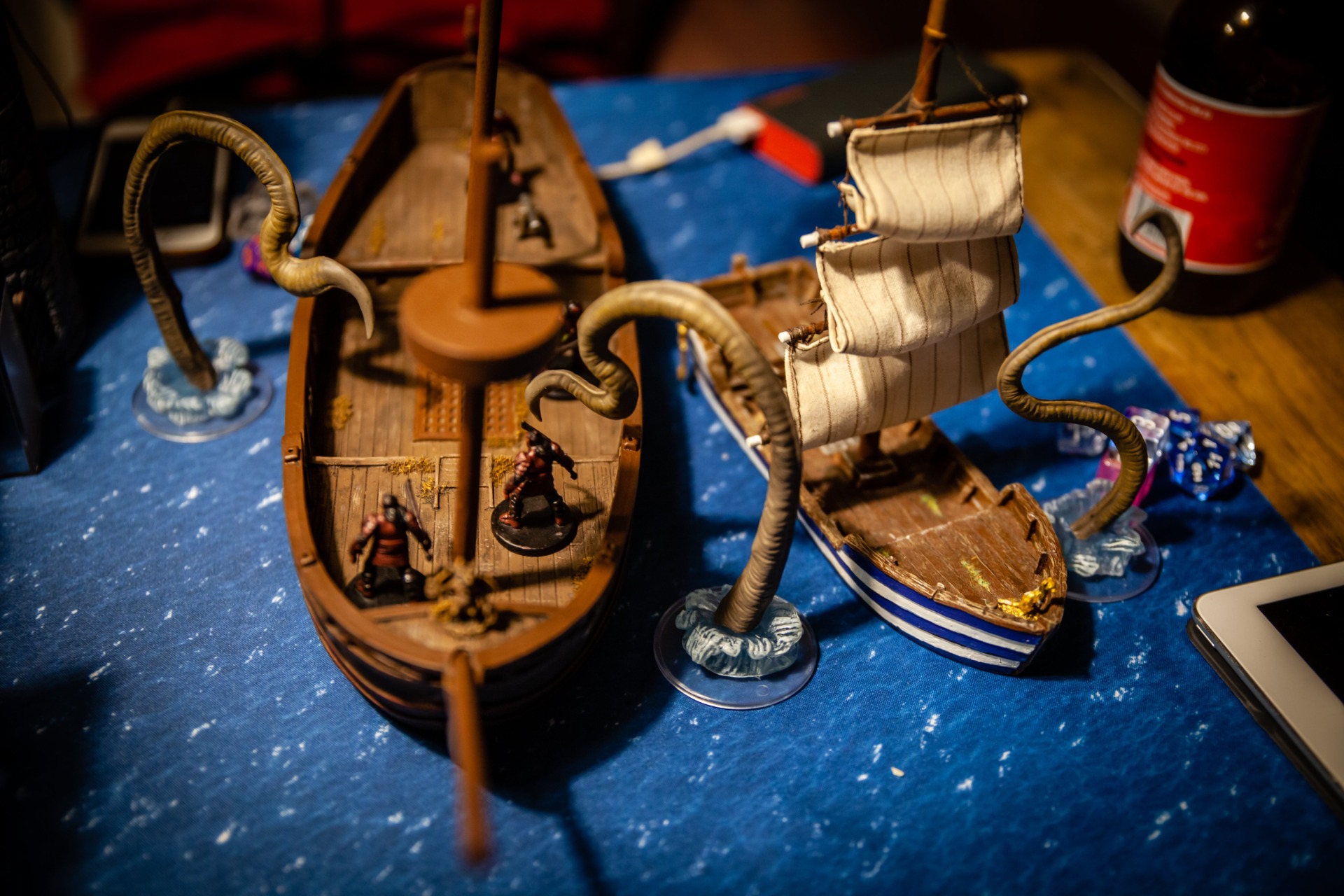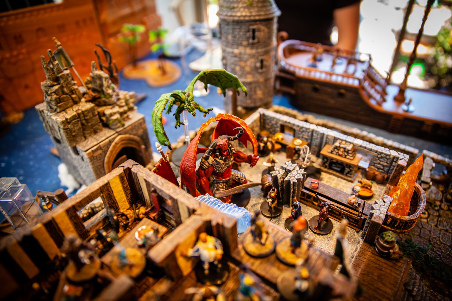 Overseen by DM Paul Houlihan, who also did all the painting (the terrain is a mix of stuff, most of it from Dwarven Forge), the party (Persimmon’s Hate) can be seen here wrapping up a 15-hour session to conclude the second of six books in the Skull & Shackles campaign