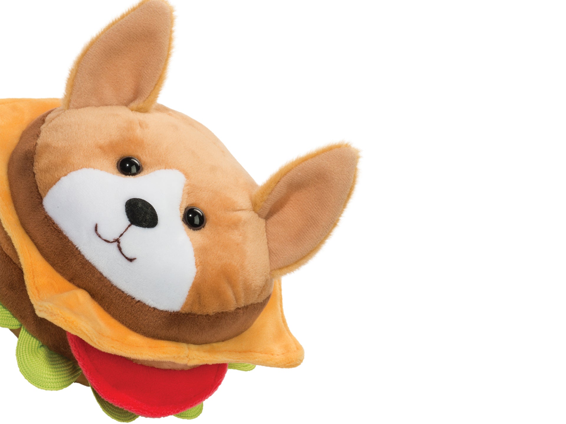 It’s a seven-inch plush double cheeseburger with a corgi face for the top bun, which is completely silly and I love it. It’s part of the Foodie Macaroon line of plushies coming in March from Douglas Toys, a company whose mailing list I’ve been on since they yelled at me for taking photos without permission during my first visit to the New York Toy Fair (they thought I might be a toy spy, which is a real thing). It’s mesmerizing. Look at that face.