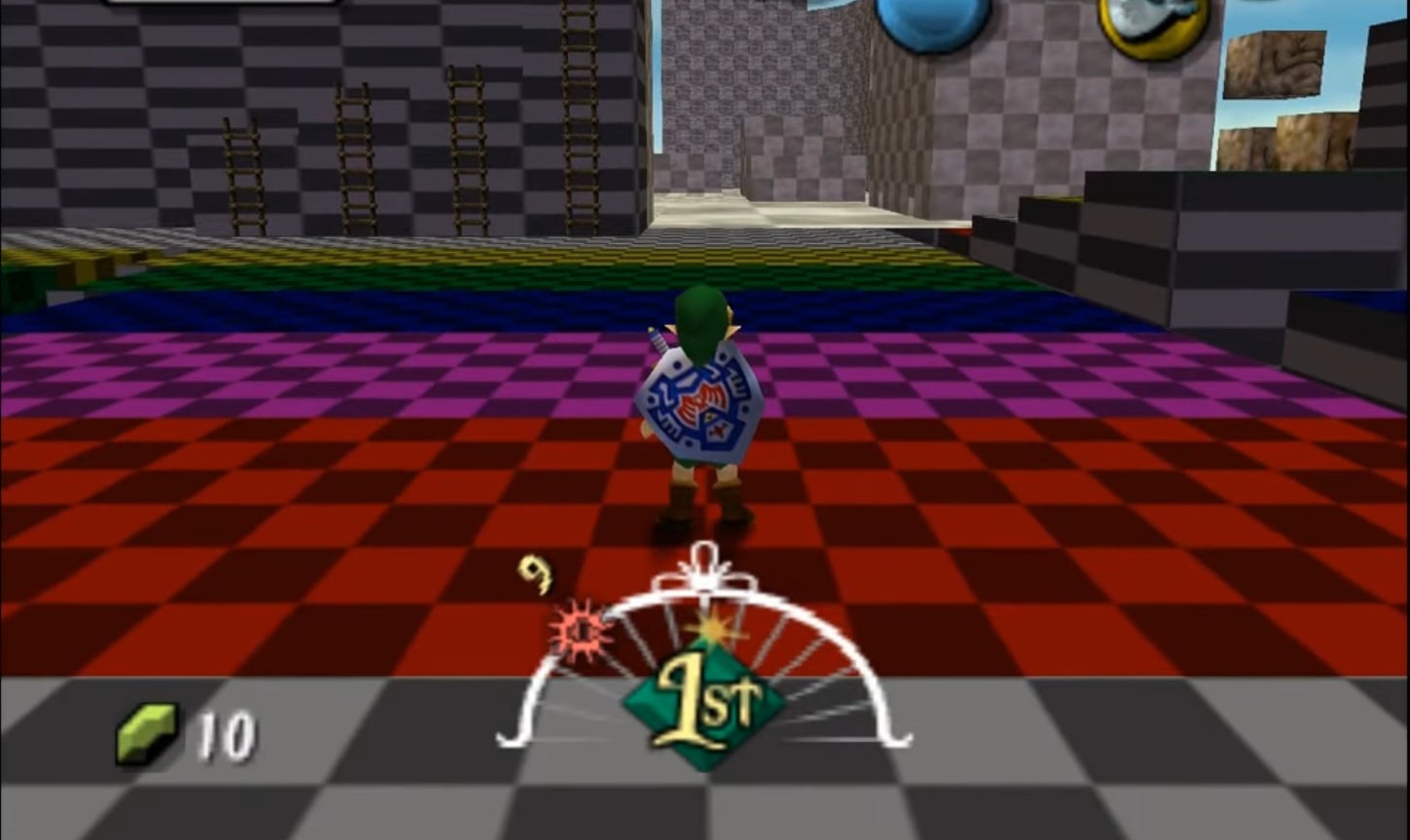 This new variation of the trick involves the Japanese version of the game and can be performed on consoles. It involves moving a rupee around outside of the Deku Palace. After a few more steps, getting caught by a wander guard doesn’t kick Link out of the palace grounds like normal. Instead, it warps him to a developer testing room.
