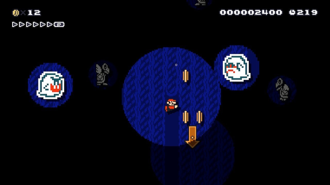 Swimming levels in Mario games are scary enough without also adding creepy music and darkness. Put all together and it becomes a nightmare. But this level never feels impossible and the guided path helps keep things spooky but not confusing.