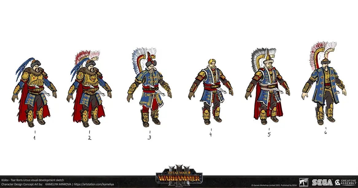 A particular highlight are the visual development sketches, raw explorations of some of the faction’s colour schemes and unit design specifics, that are the very heart of an art team’s work on a game like this, and which are very cool to see shared here.