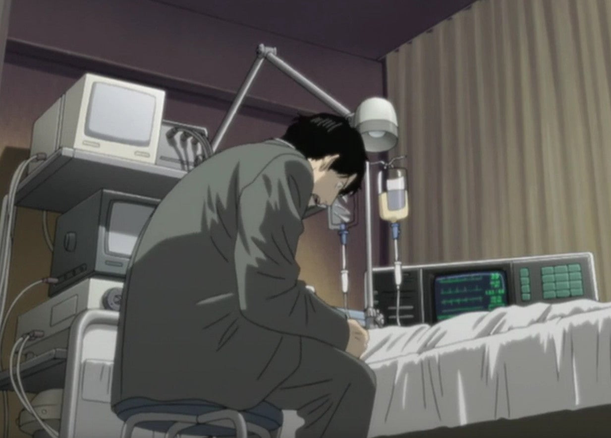 Tenma, wracked by guilt by an earlier choice to perform surgery on the more politically expedient patient, opts to save the young boy. Unfortunately, the mayor dies in the process. The director is furious with Tenma and decides to crush his career. Tenma’s fiance Eva, who’s also the daughter of the director, dumps him. Feeling like his whole life is falling apart, Tenma gets drunk. Unable to control his emotions, he winds up by the bedside of the boy he saved and curses the director, wishing him and his colleagues were dead.