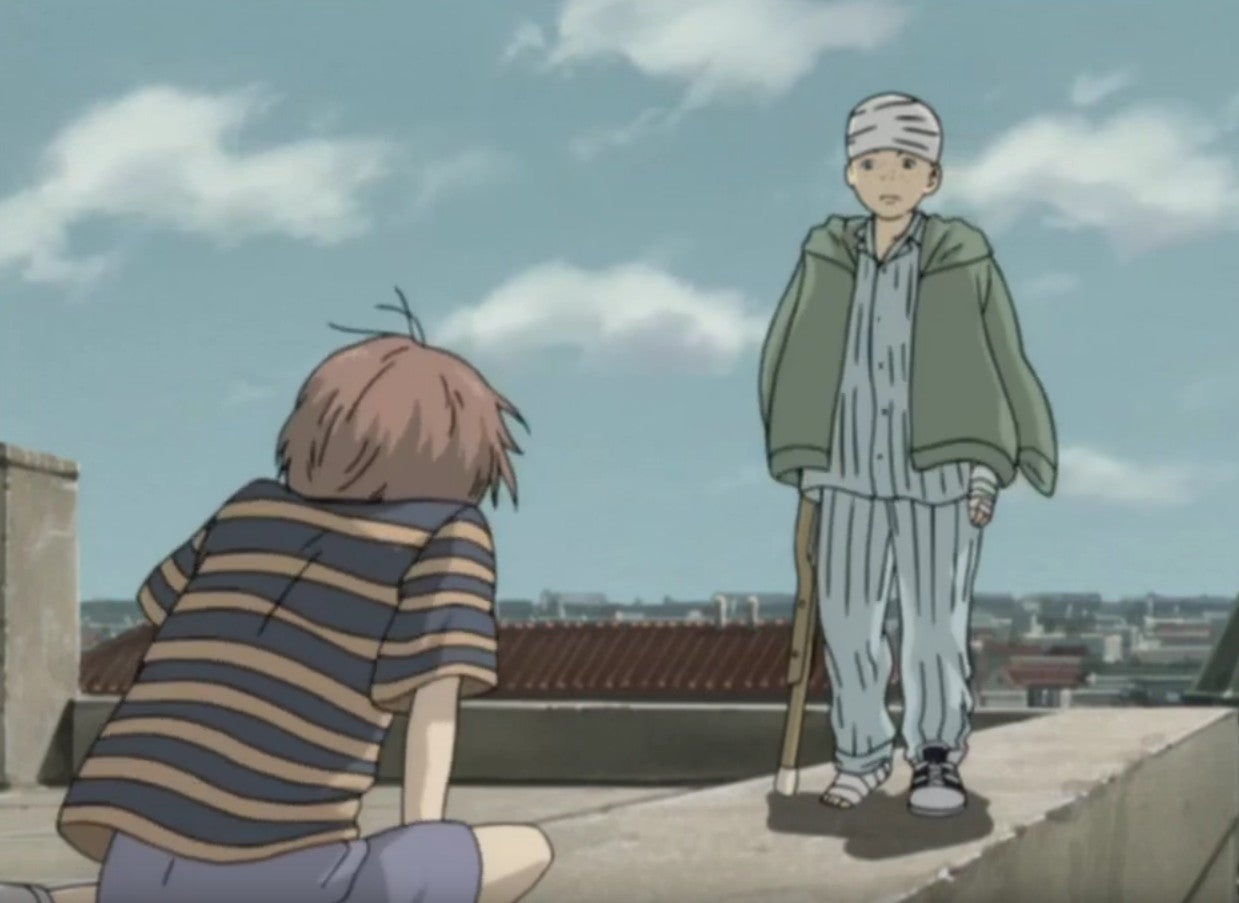 The tragedies of human nature are epitomized in Johan’s connection with a terrible program called the 511 Kinderheim. Run by the East Germans, it was a laboratory where they carried out social experiments on orphans to try and create perfect soldiers. To that end, they performed horrifying acts on the children to desensitize them. The orphans weren’t even given names so they could be under the complete control of their instructors. Some of Monster’s most difficult moments are when they expose the crimes many of the adults committed against children. Contemporary Johan teaches some kids a game of dare that represents how he views his past. Children are required to climb on a roof and walk towards each other with their eyes closed. “It’s like making a wager with fate,” one of the kids explains.