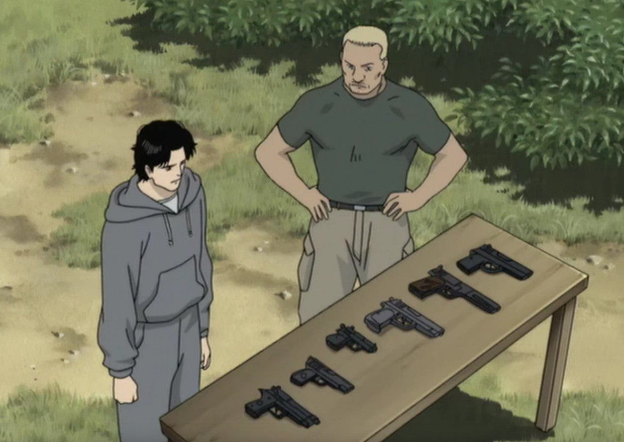 In one of my favorite episodes, Tenma actually takes the time to undergo training with a former army veteran, Hugo Bernhardt, so he can learn how to kill. It adds an element of realism to explain how a doctor, who has no experience with firearms, learns how to use them. During the episode, we learn about Bernhardt’s dark past and the war crimes he committed when he served in Myanmar. His actions then haunt him to this day. But we also see how Tenma, despite being on a mission to kill, helps Bernhardt to take steps to make peace with that past.