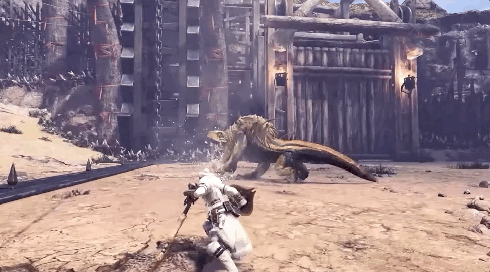 Thus began a grind to slay previous monsters for higher-quality armor. When I returned, I faced the Tigrex with confidence, rushing in close and matching its aggression. I unleashed furious flurries with my dual blades that lashed at its legs and webbed arms. I dodged the madcap dashes that previously sealed my doom until the beast, thwarted by its zeal, tumbled over and offered me an opening. I slashed again and again and I broke its face first. As it reared a claw, my blade smashed into it and shattered bones off. The Tigrex fled deep into some caverns where a pack of girros—small lizards whose bites have the capacity to induce paralysis—swarmed the Tigrex. While it was paralyzed, I attacked again and broke more and more fragments from its body until it regained control and fled to its nest, where I captured it with tranquilizing bombs.