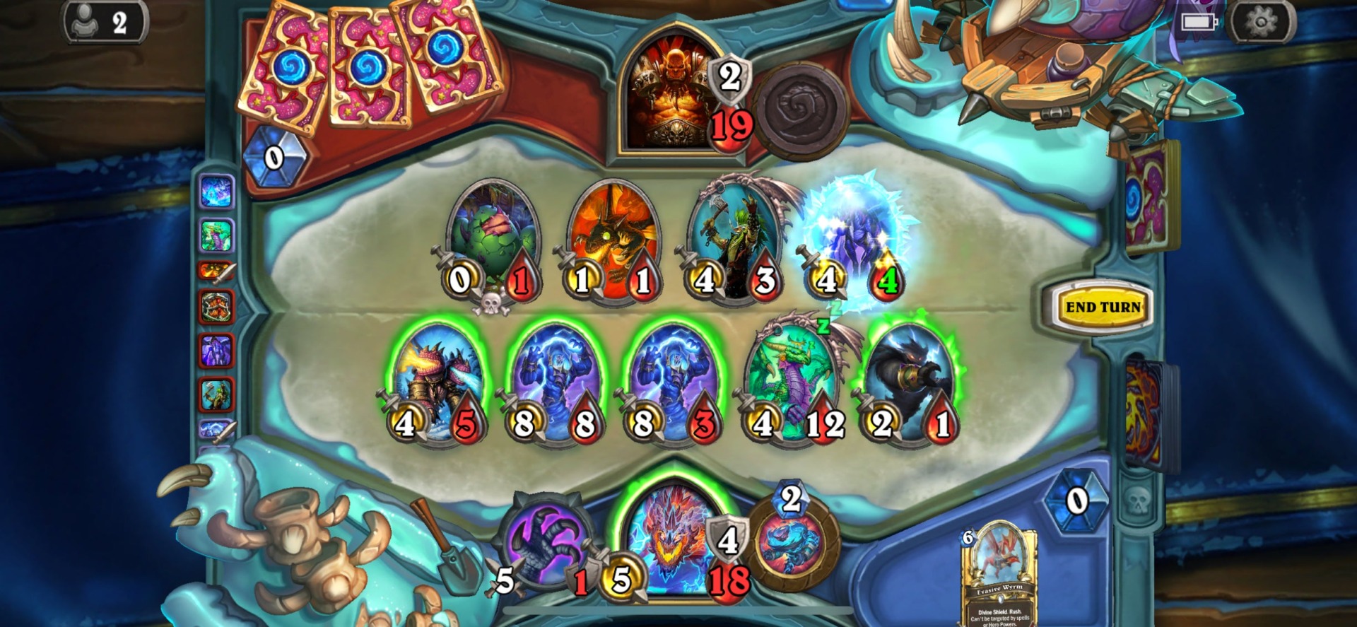 I owe much of this to the new cards, which have made a variety of interesting decks possible thanks to a mechanic called “invoke.” Certain classes can add a special card to their deck called Galakrond. He’s a nasty evil dragon dude, and if you play his card, you get special abilities and minions. Other cards can “invoke” Galakrond, and playing these cards increases Galakrond’s strength.