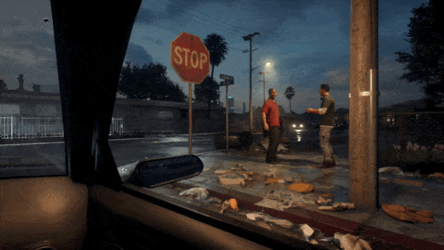 You control whether you look at those men. You can’t interact with them, though. Still, the ambiguity of the scene is potent. What’s their problem with you, with the police pulling up nearby? Is it them? Is it you?