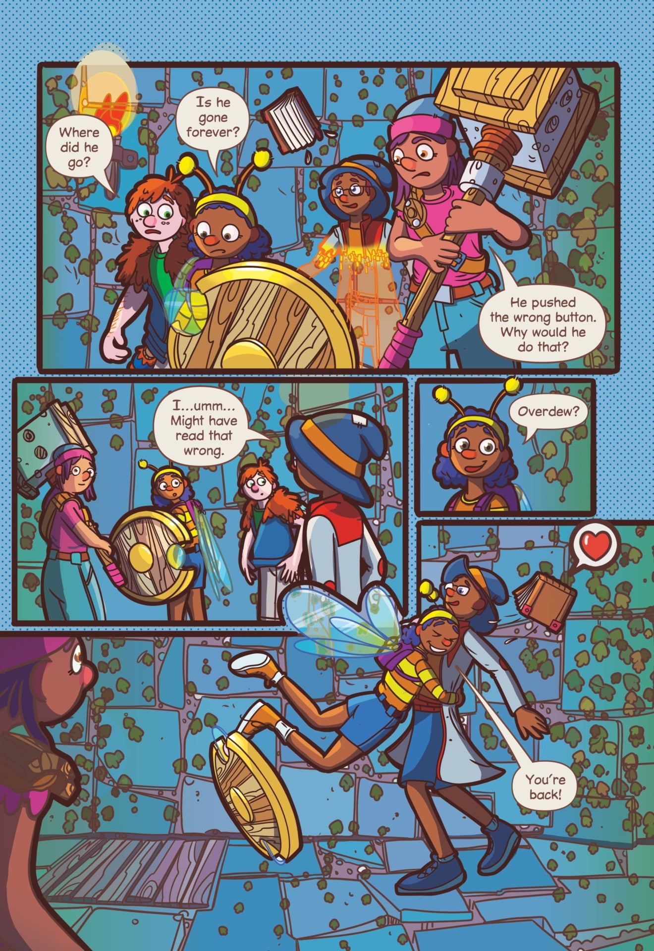 My Video Game Ate My Homework creator Dustin Hansen taps into decades of experience working on games like The Sims, Madden football, and EA’s kid-friendly Street Sports series in crafting this grand comic book adventure. He also taps into his personal experience as a young teen with dyslexia. Dewey struggles with the learning disorder and must overcome his self-esteem and confidence issues.