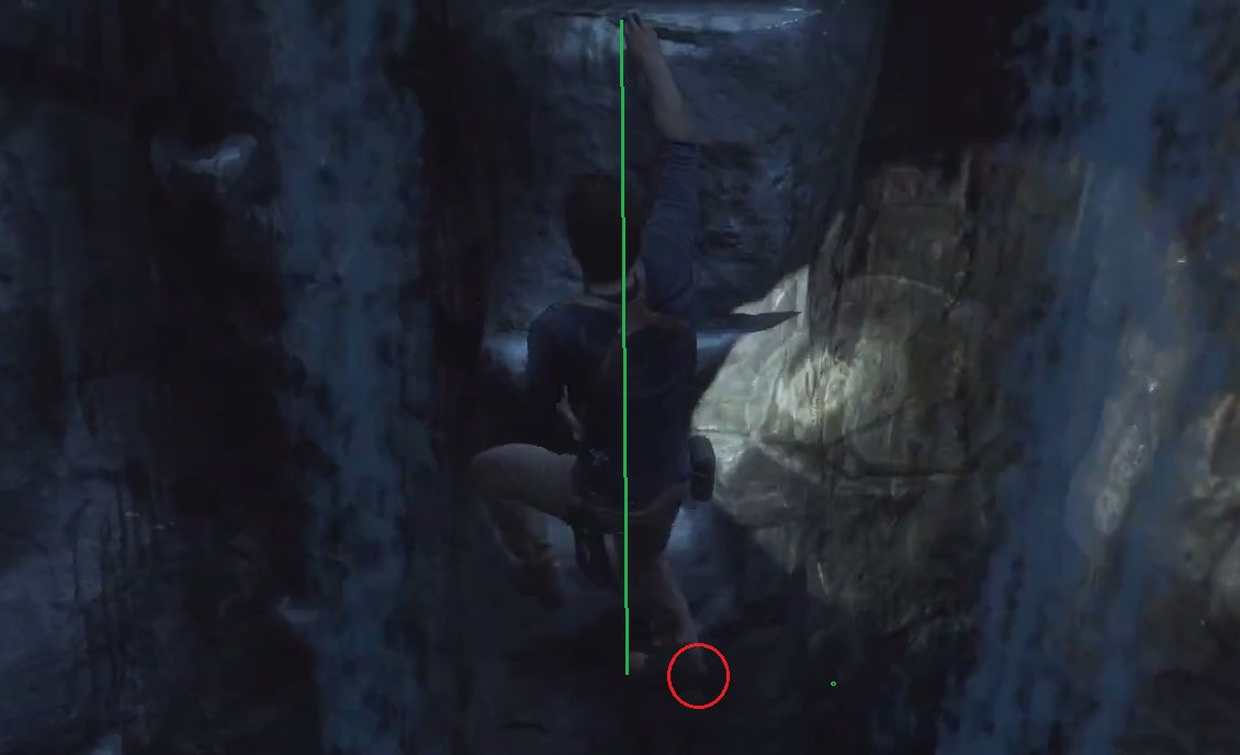 The high knee helps climbers achieve a number of different goals all at once. It helps with balance but more importantly it draws Drake’s hips closer to the wall, lessening the impact gravity has on his body weight. This in turn reduces the pressure on his joints, muscles and tendons, meaning that Drake can climb stronger for longer. When you consider the marathon routes that Drake finds himself working on throughout the course of the Uncharted games, this is of paramount importance.