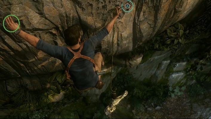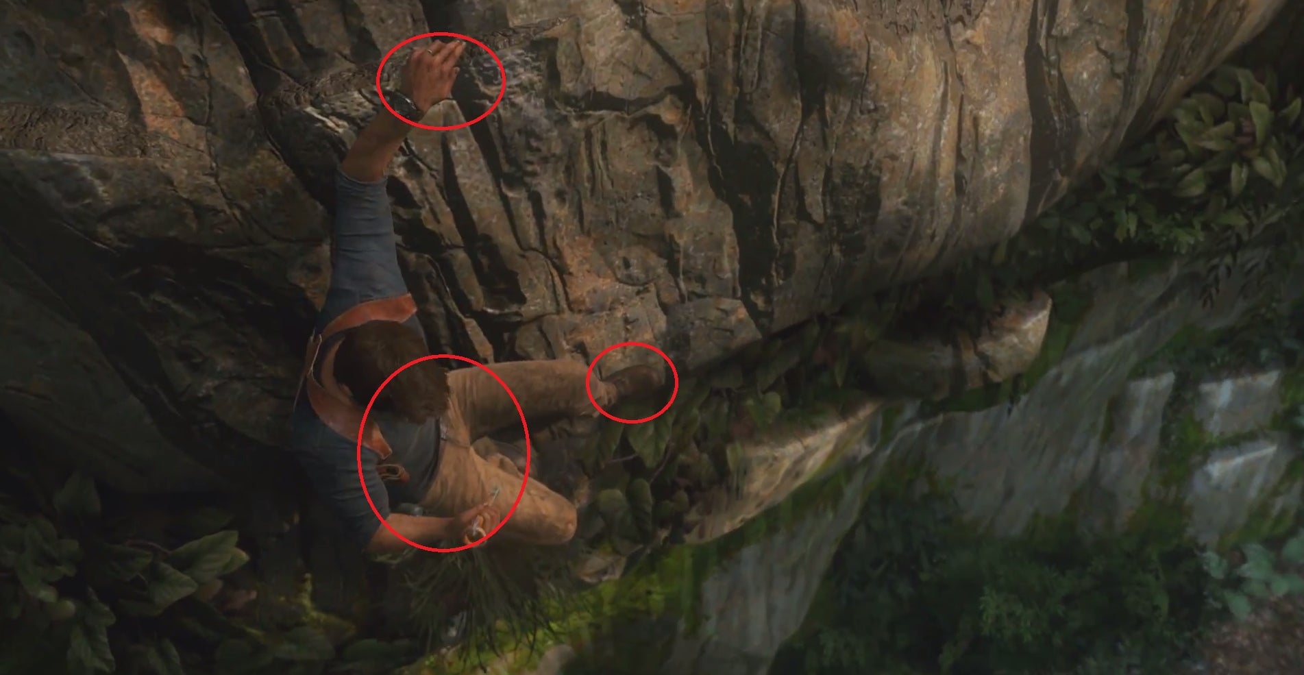 I love the above screenshot — it provides such a clear insight into how Nathan Drake is pulling on the rock, and it pleases me to see that Nathan Drake is climbing open handed. It just goes to show, even if you’re a daredevil treasure hunter, willing to go to strange lands in search of fortune and glory, when it comes to grip positions, it always pays to play it safe.