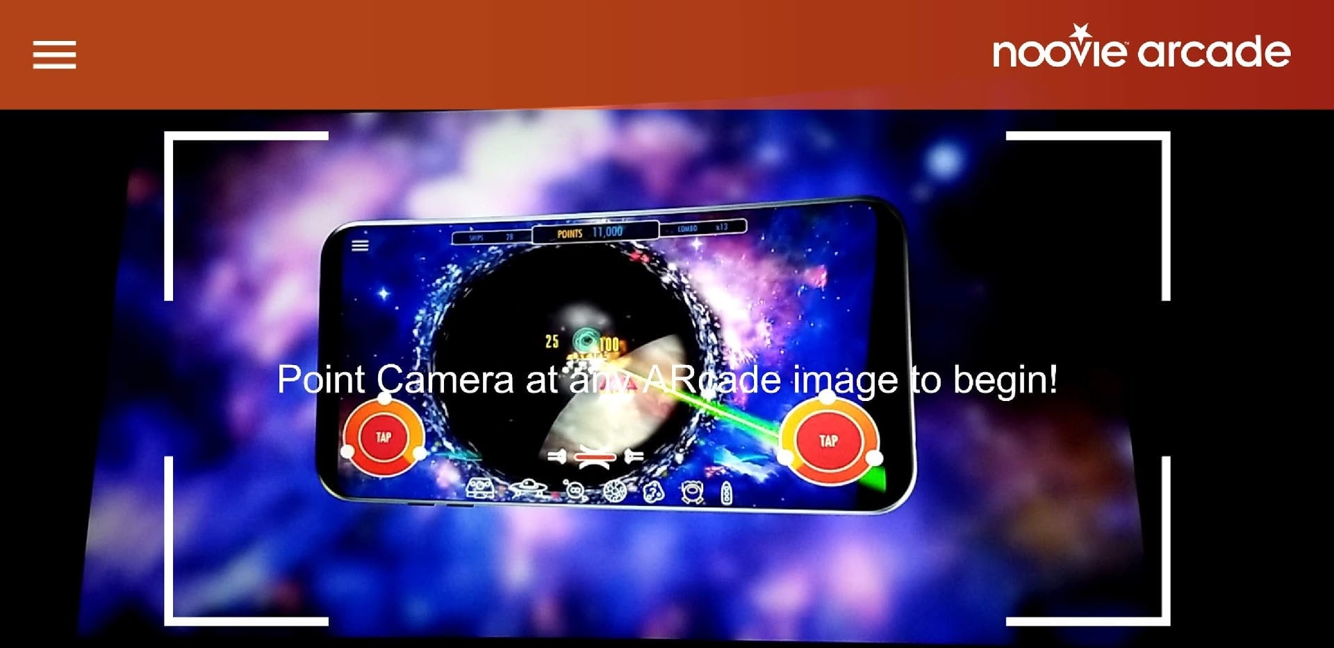 My favorite Noovie Arcade title by far is a game about blasting alien ships. I wish I could tell you the name, but I canāt find it. I think it might be called AR Blasters. There arenāt any fan wikis about these games online and the games donāt even say their names after playing. This makes it hard to even figure out what Iām playing.
