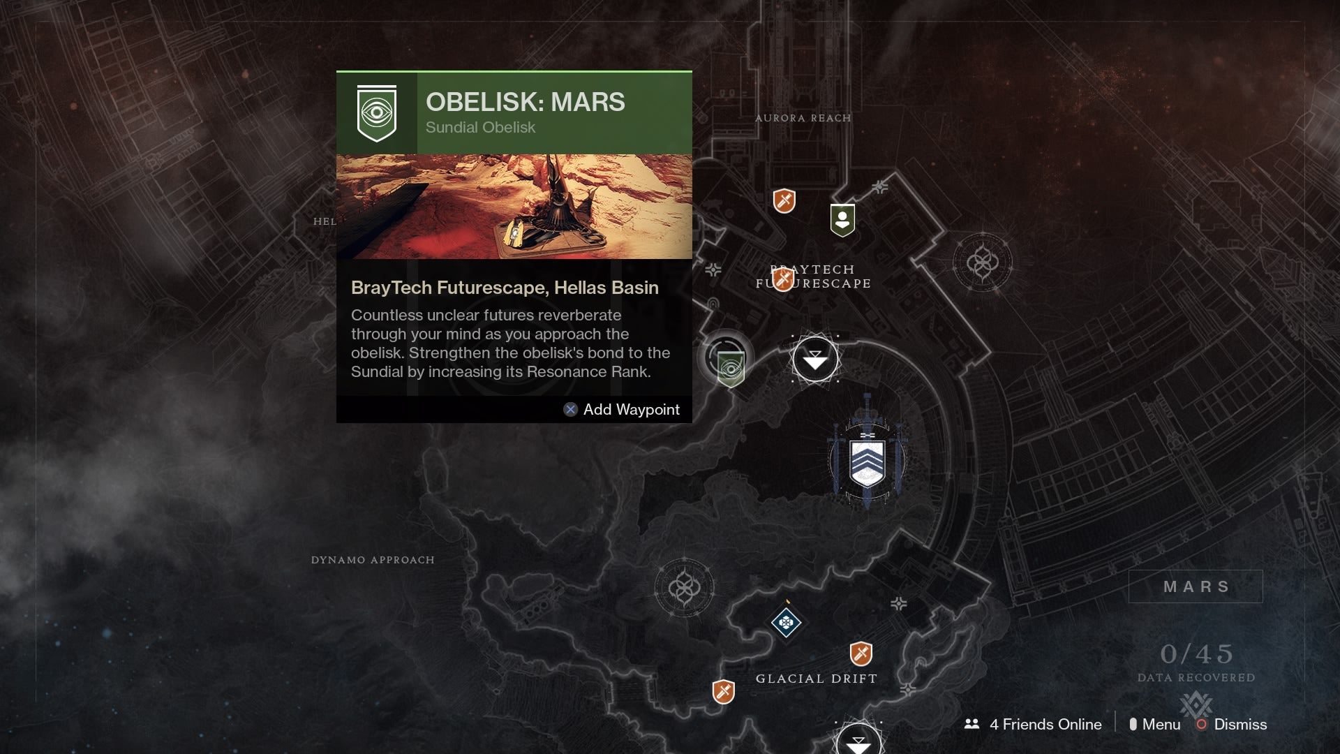 I knew there had to be more Obelisks to activate, though. Sure enough, some other people have had similar problems where the quest for activating the one on Mars doesn’t automatically spawn. After returning to Osiris, who wasn’t marked on the map as having anything else to tell me, he dumped three new quests on me, including the one I needed to get the Mar’s Obelisk up and running.
