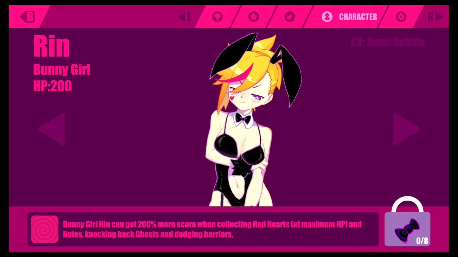 For fans of more frantic rhythm action, there are three difficulty levels to unlock for each tune, but there’s not a lot of room for the challenge to escalate when there are only two lanes to play with. Seasoned rhythm game players might be put off, or they could be tickled by the chance to play a little more leisurely. It’s nice to casually gain levels and to unlock songs, alternative outfits, and helper characters who provide benefits like temporary invincibility or damage reduction to the game’s three protagonists, Rin, Buro, and Marija.