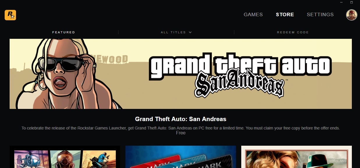 The Rockstar Launcher was first spotted by numerous GTA and Red Dead fans across Twitter earlier today. It’s similar to Blizzard’s Battle.net launcher with a similar layout and store. There are seven games currently for sale, though games like Manhunt, Midnight Club, older top-down GTA titles and other classic Rockstar games aren’t currently for sale. Users who download the launcher can get a free copy of Grand Theft Auto: San Andreas