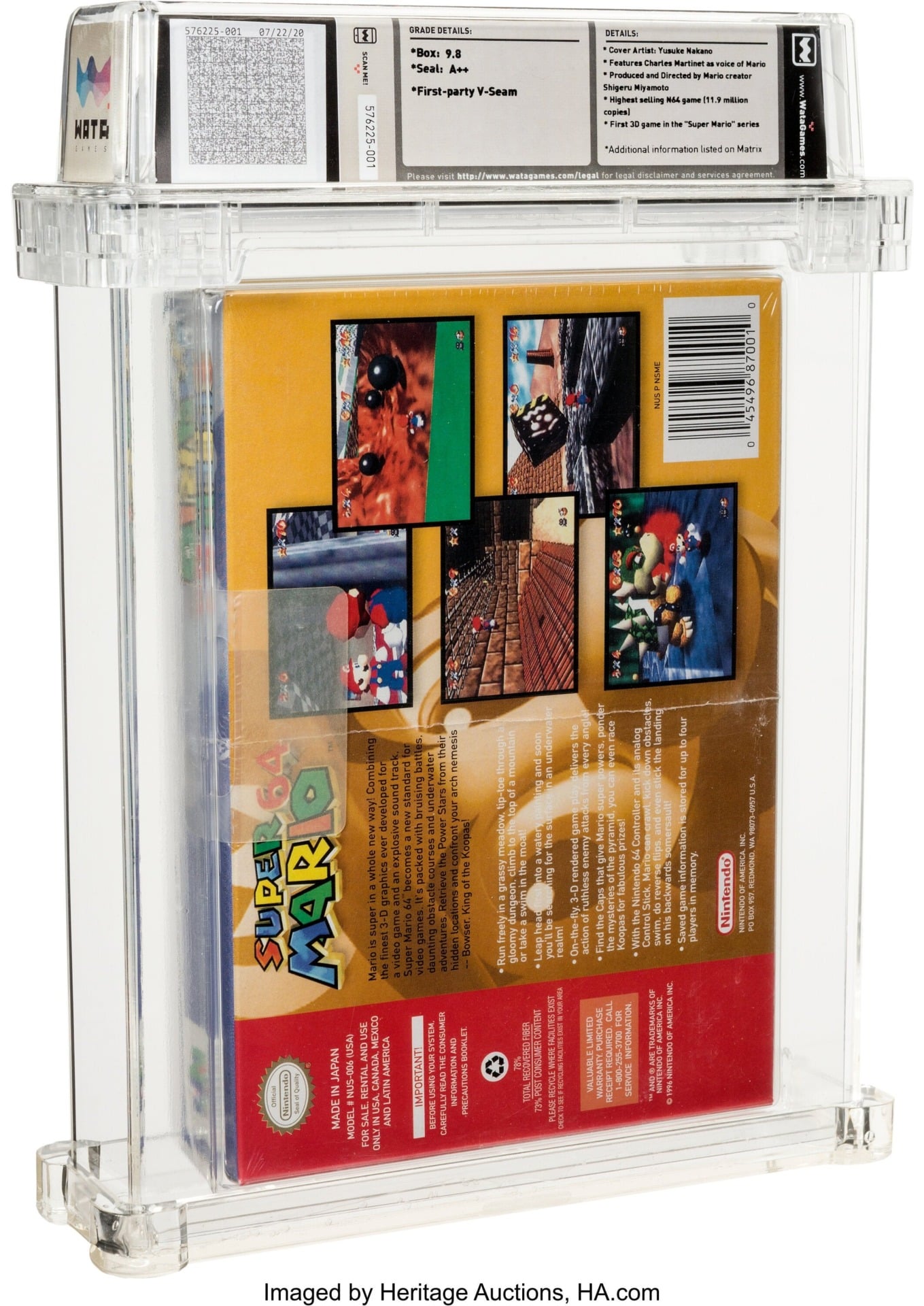 A factory-sealed copy of 1996’s Super Mario 64 with a condition grading of 9.8 A++ (practically undamaged) went for $1,560,000 at the Heritage Auctions house on July 11, setting a new record for the highest-selling single video game ever at auction. To put it in perspective, that was almost double the previous record, set just a few days prior by The Legend of Zelda. It’s also just under half of what the a copy of Action Comics #1, Superman’s first-ever appearance back in 1938, went for earlier this year