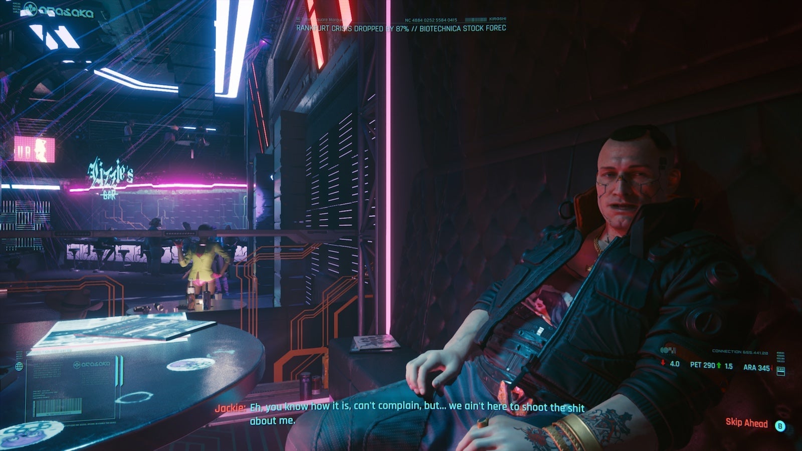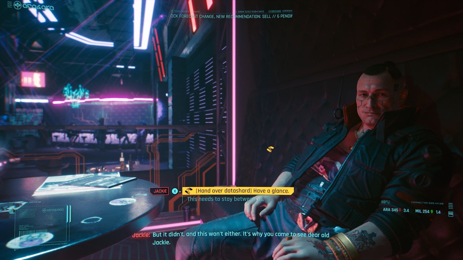 Cyberpunk 2077 allows for robust customization of your heads-up display, with more than a dozen tweakable options in the Interface menu. Most of them are worth leaving on, at least at first, when you’re learning the ropes. But some are more distracting than anything else. Consider switching off background chats, which cause subtitles to pop up over non-player characters. Those bit parts don’t often say anything interesting, and any given frame of Cyberpunk 2077 is already busy enough as is. You don’t need the extra visual clutter. (Under the Sound menu, the “Overhead” option also controls whether or not subtitles pop up over NPCs. As far as I can tell, these two settings do exactly the same thing? Mysterious.)
