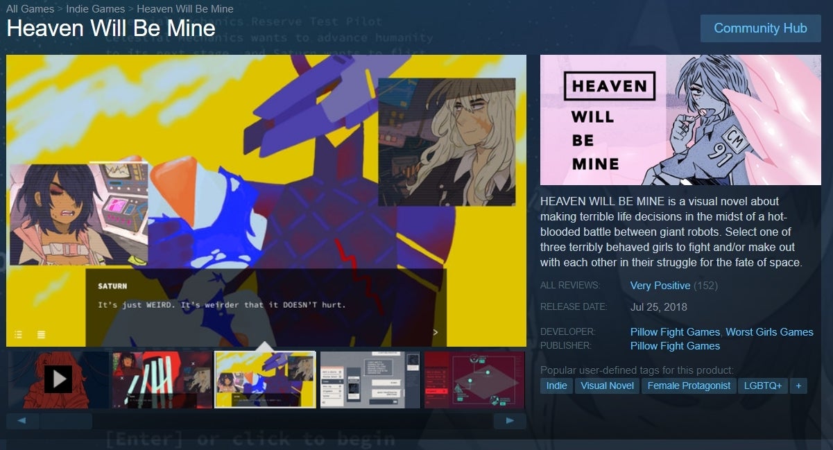 On top of that, last year, Valve apparently removed hub page functionality from non-approved tags, seemingly as part of a broader effort to standardize the tagging system. This left devs who had previously custom-tagged their games “LGBT” out in the cold.