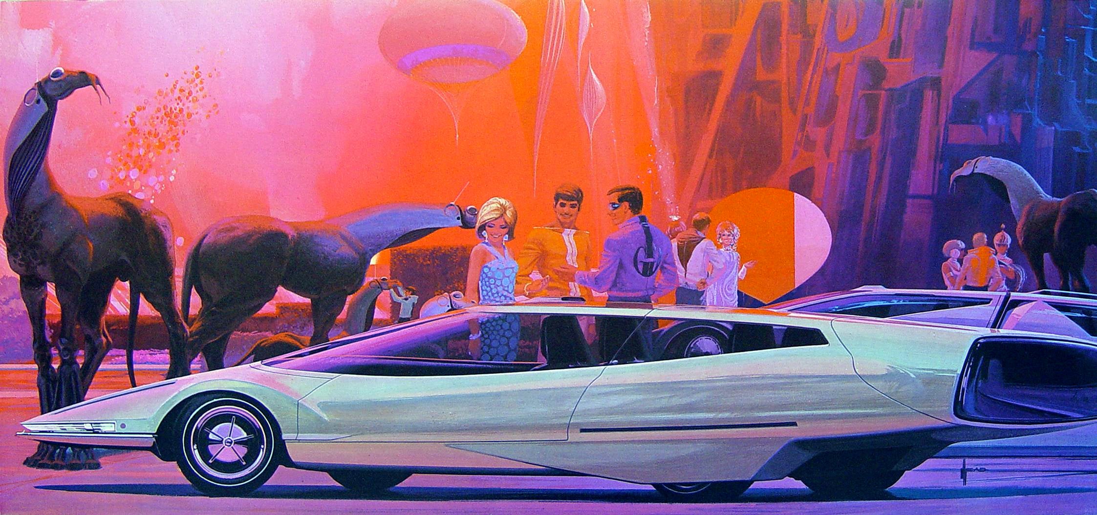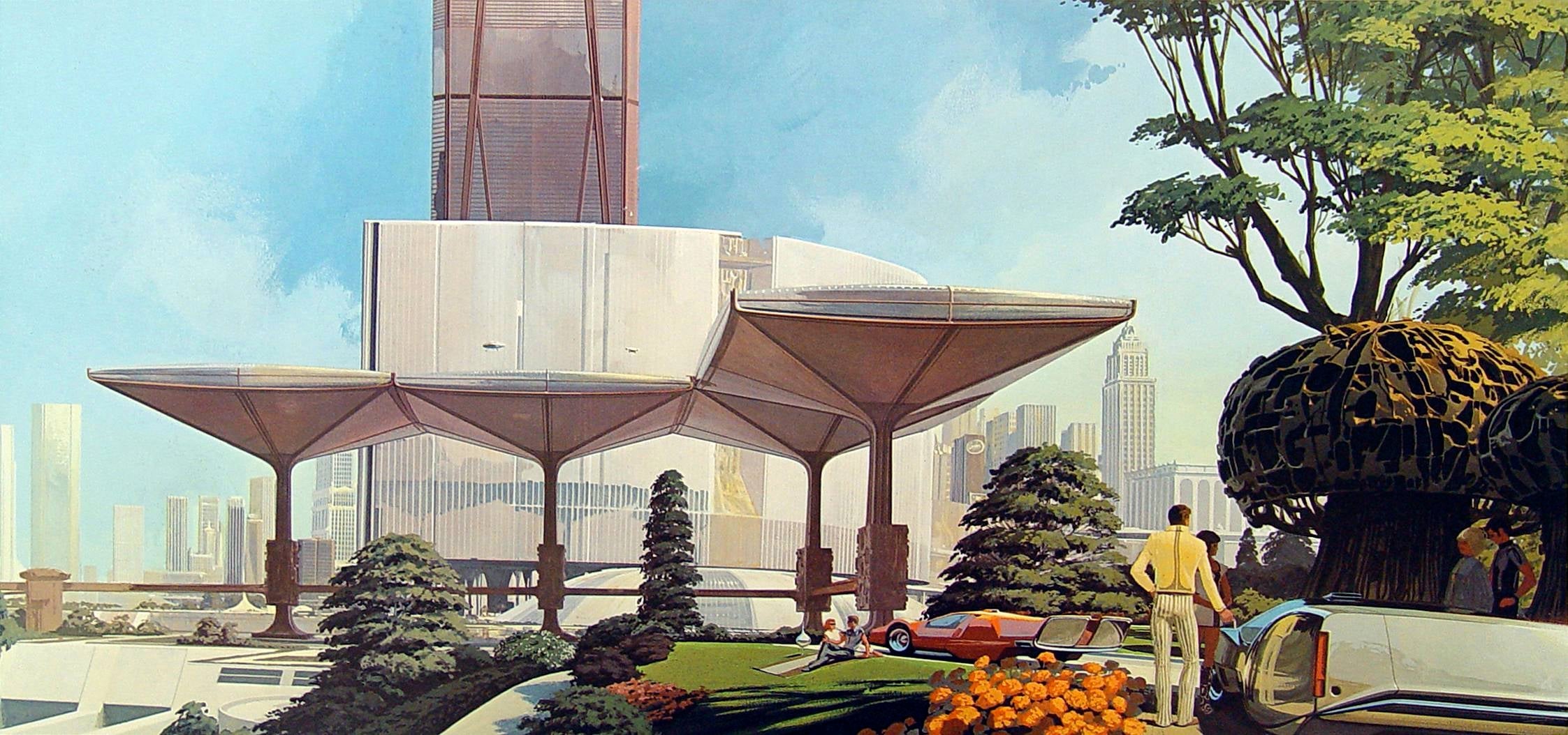 While popularly known for his work as a concept artist, Mead also left a mark as a futurist and corporate artist, working for companies like Ford, Philips and United States Steel, most often providing illustrations of his bold, clean visions of the future.