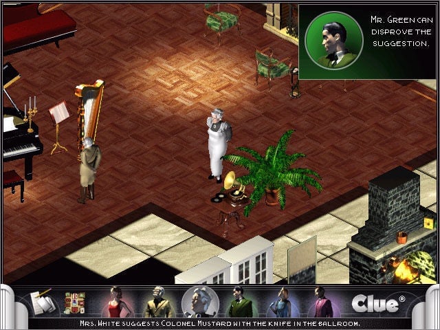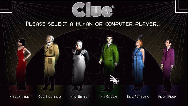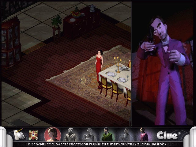 It was an isometric, voice-acted version of the board game released in 1998. It was pretty good: there were atmospheric sound effects, like rolling thunder, that set the mood quite nicely, and all the characters were animated as they walked around the board, and there were weird little cutscenes of the murders every time you accused someone.