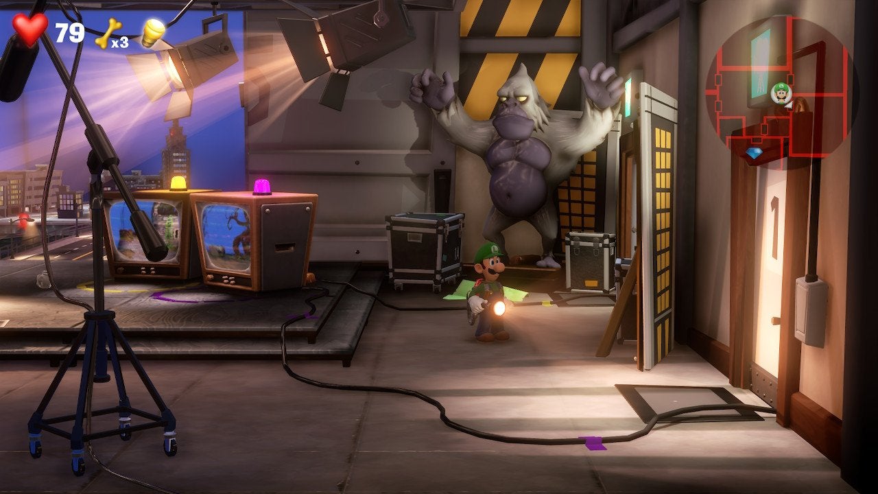 The level is Paranormal Productions and it is found on the 8th floor of the hotel. Paranormal Productions is a film studio that is, for some odd reason, located inside a ghost hotel. Best not to think about it. But the moment you get off the elevator, the level feels different. Luigi is surrounded by movie posters, TVs, cameras and other film-related items.