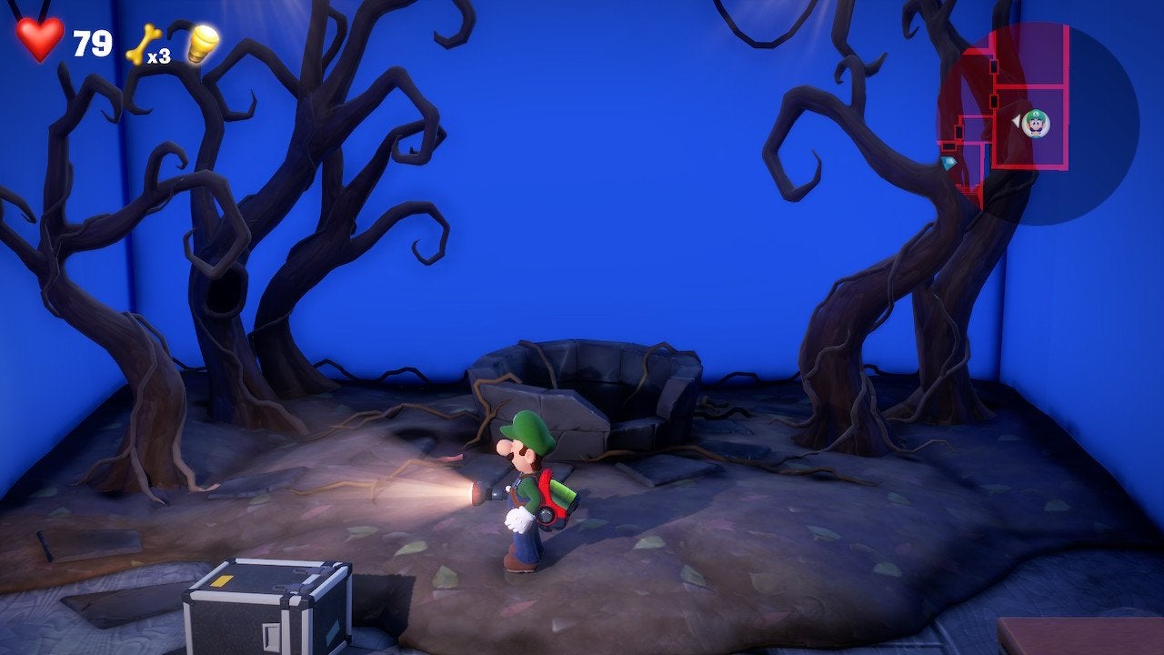 Each of these sets feels and looks different. One set is a city street on fire. Another set is a creepy haunted well, complete with an evil ghost animatronic that pops out. To complete the puzzles in each set, Luigi must film Gooigi. Through the camera, the green screens and cameras disappear and you instead see a finished set, complete with visual effects, attacking ghosts and music. Gooigi isn’t the most charismatic actor, but he gets the job done.