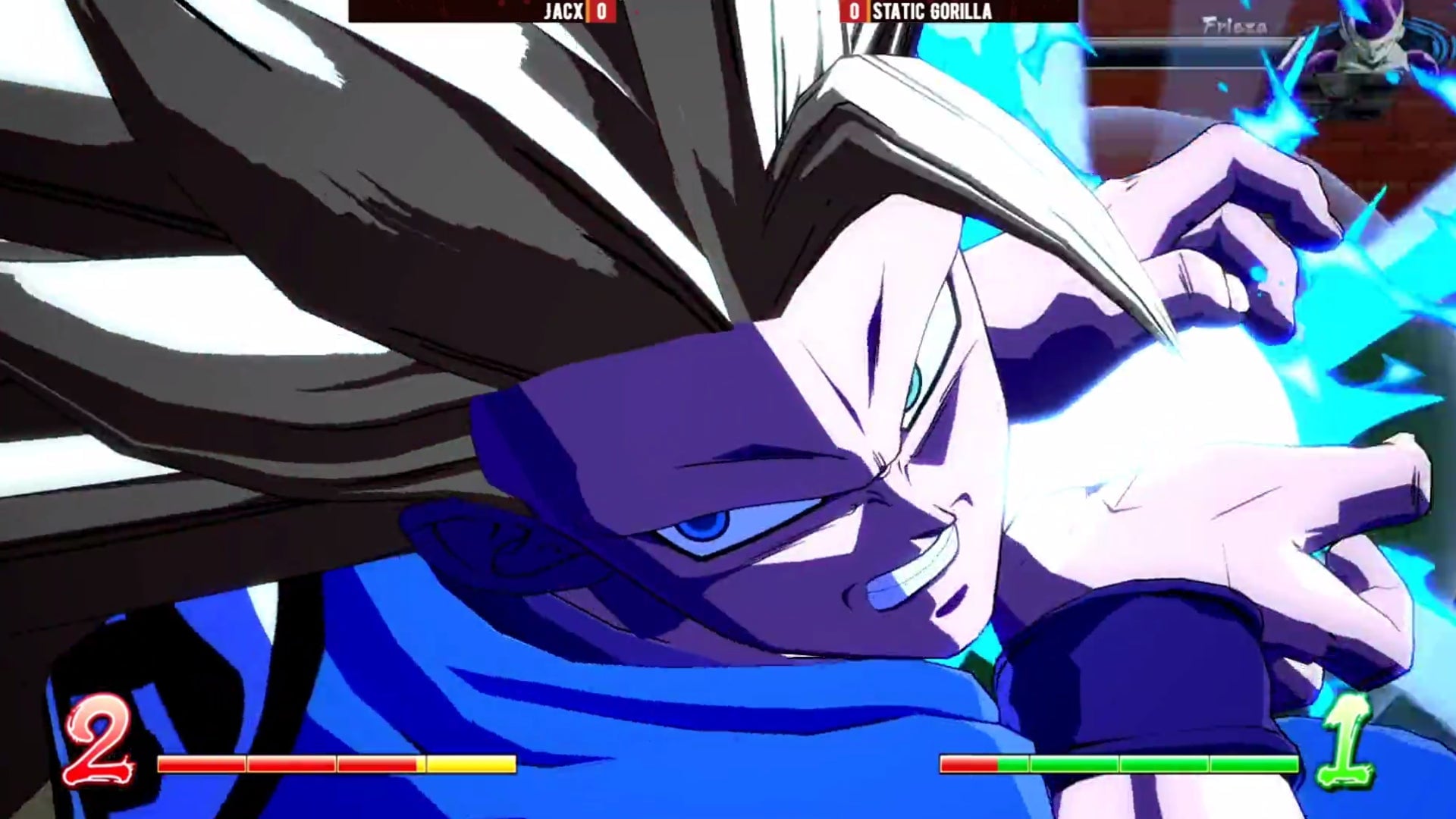 Goku’s initial combo you see at the start was fairly common, a flurry into an air juggle and a quick Kamehameha to finish it off. What’s interesting is that the Frieza player, on the way back to the ground, catches Goku calling in his teammate Cell for an assist and juggles him a bit, putting some damage onto him. It’ll be interesting to see how players punish greedy assist usage.