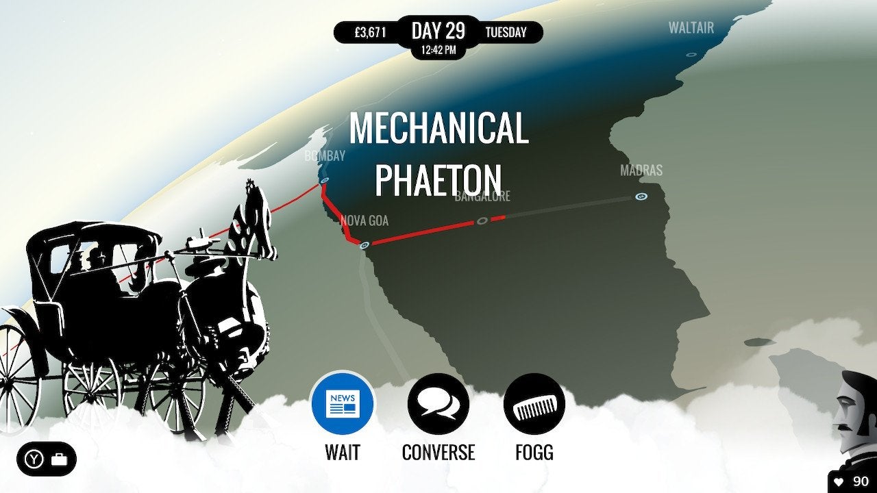 In 80 Days, you control not Phileas Fogg, the eccentric rich protagonist of Verne’s novel who has accepted a bet to travel around the world in 80 days in exchange for a substantial payout. Instead, you play as his personal valet, Passepartout, who does the real legwork. In the vaguely steampunk world of 80 Days, Passepartout is responsible for the more banal tasks: finding transportation, making travel arrangements, and buying and selling trinkets to make sure you’re flush with cash. On top of that, you have to manage Fogg’s ambiguous moods.