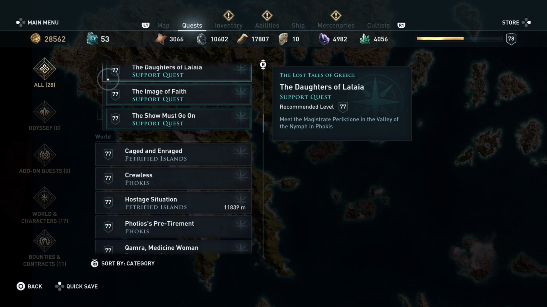 My play clock for Assassin’s Creed Odyssey is at 149 hours, 9 minutes, and 45 seconds. My quest log shows I have 28 active, unfinished quests. My map shows there are 10 more I haven’t even started, many of which may well trigger new quests to pop up on the map. Plus there are still one or two more Lost Tales Of Greece coming.