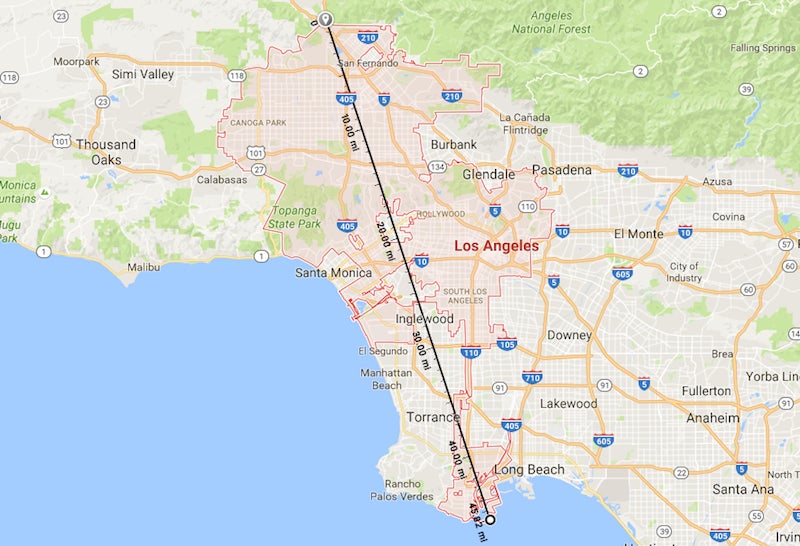 Charmander to Charmeleon: 75 km (the length of Los Angeles, CA)