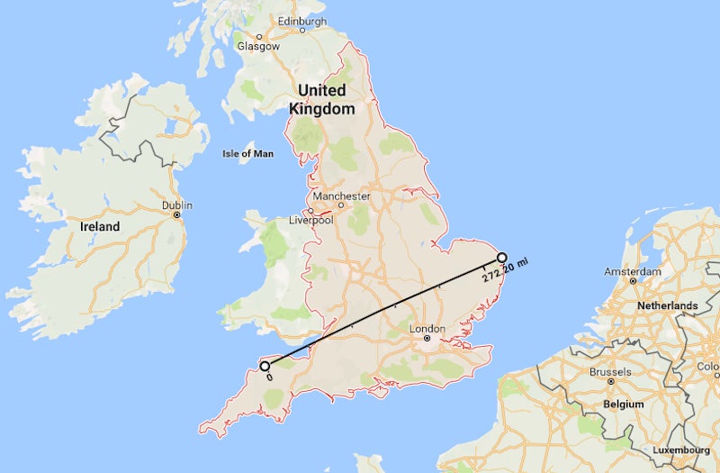Magikarp to Gyarados: 400 km (a bit less than the width of England)