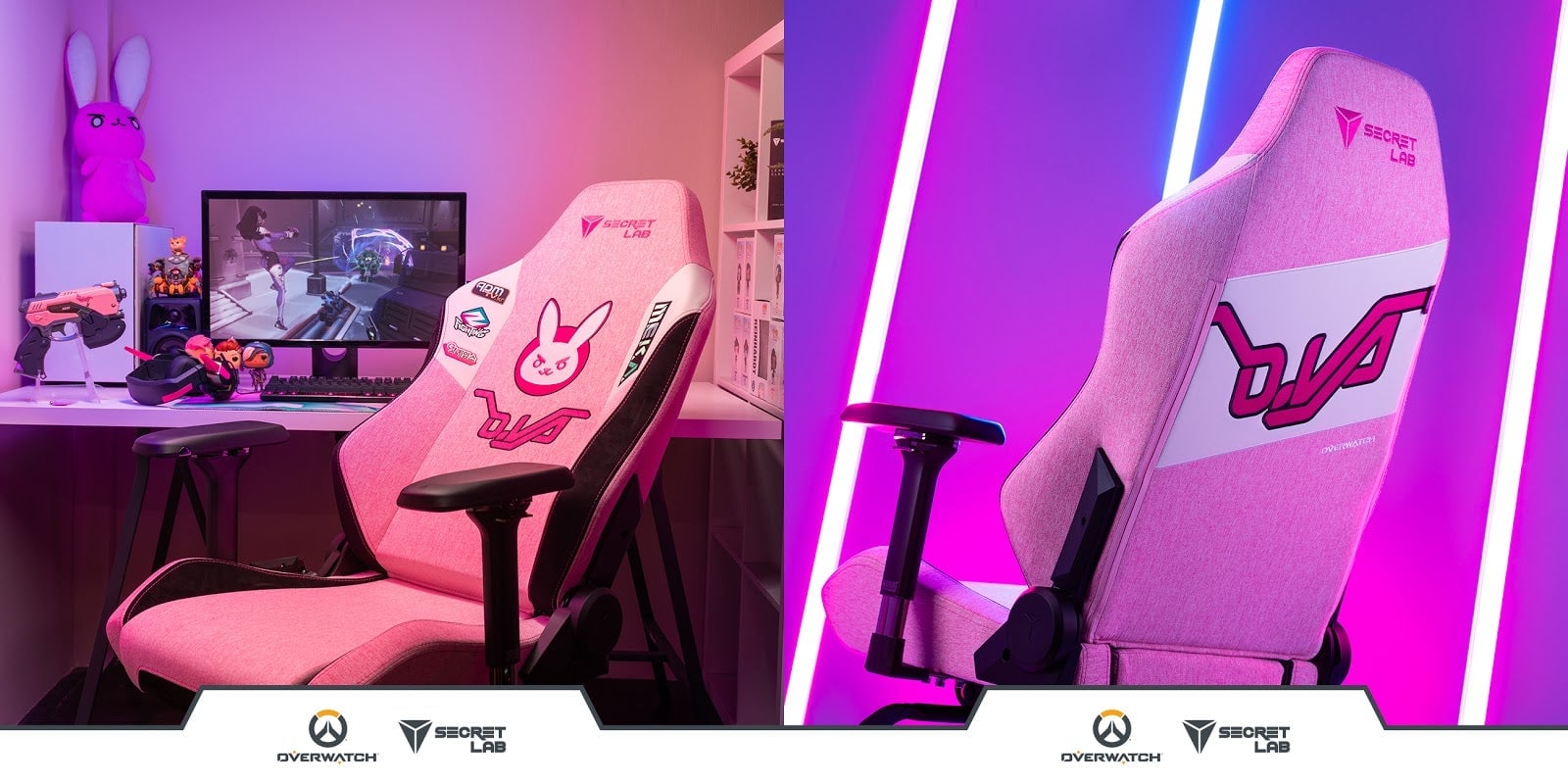 This D.Va chair, which was teased over BlizzCon weekend and officially announced today, is one of two Overwatch designs Secret Lab has put together for its official partnership with Blizzard. The first design is a pretty basic black chair with orange gradient accents and an Overwatch logo, covered with faux leather. The second is a lovely pink affair that looks like it could double as the pilot seat for a bubblegum-flavored mech. It’s described as being wrapped in soft, breathable fabric.