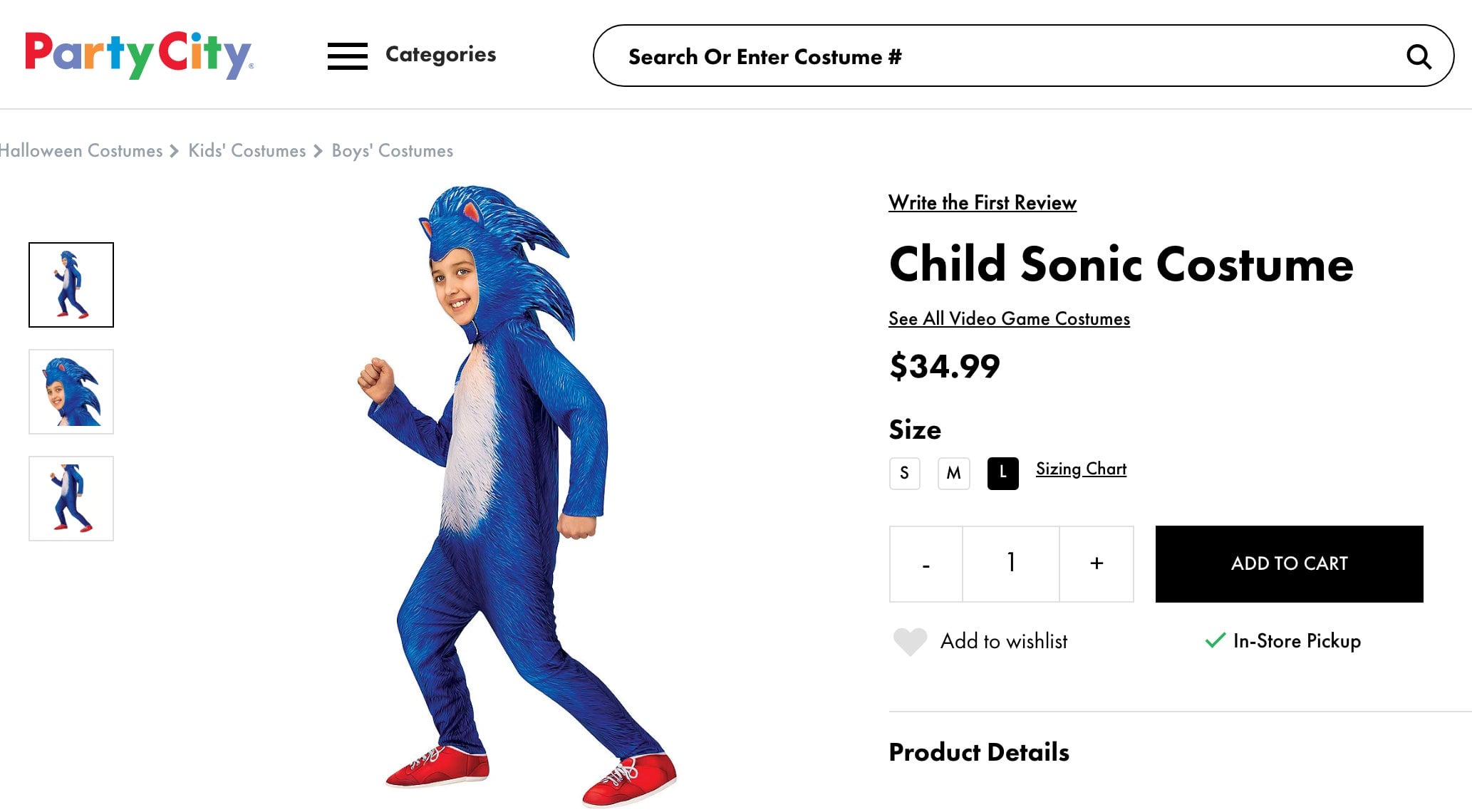 Consider with me Party City’s children’s Sonic costume. Since it is in fact based on the film—which would have been out this year were it not for a last-minute hedgehog makeover—we have a onesie adorned with a weird fur pattern and floppy hood spikes. It is good, perhaps, if you would like to dress up your progeny as sonic, the meme, and not Sonic, the mascot. Get it for your child, and you will quickly become sorry for all the days they wear it that are not Halloween.