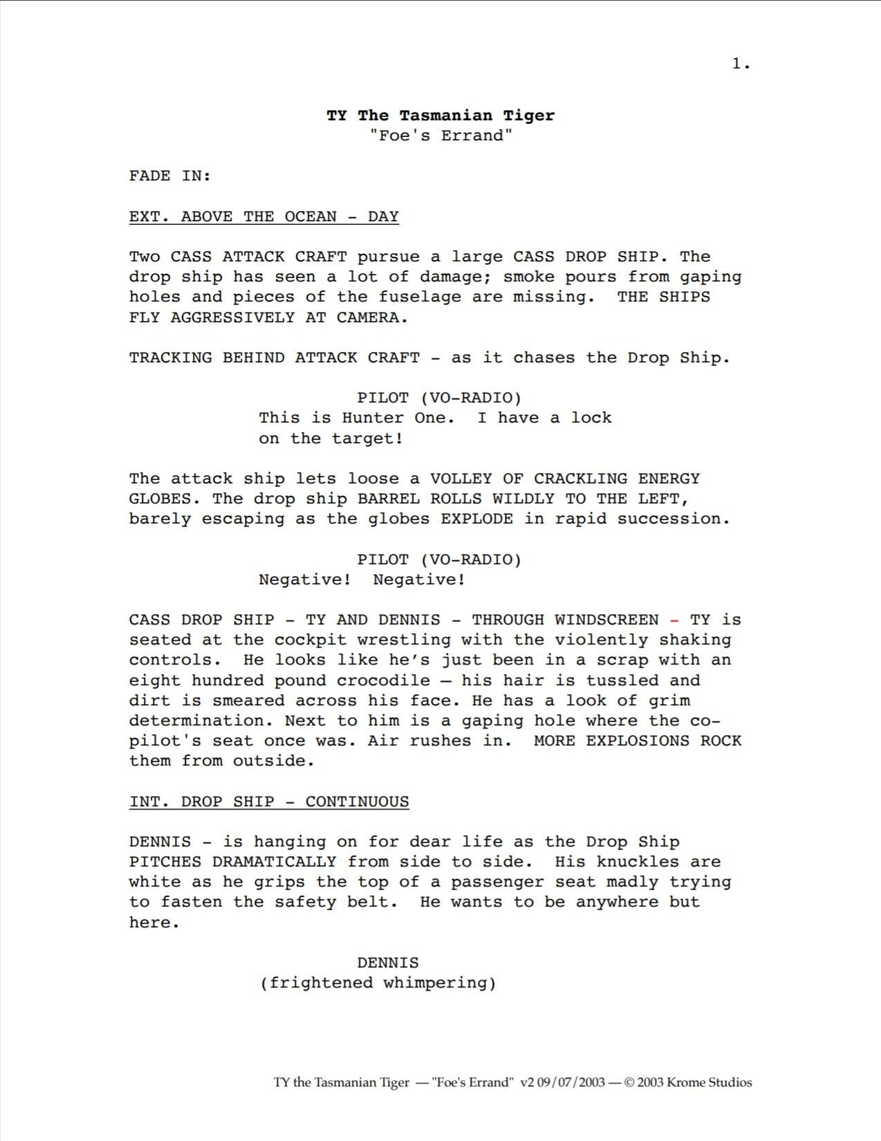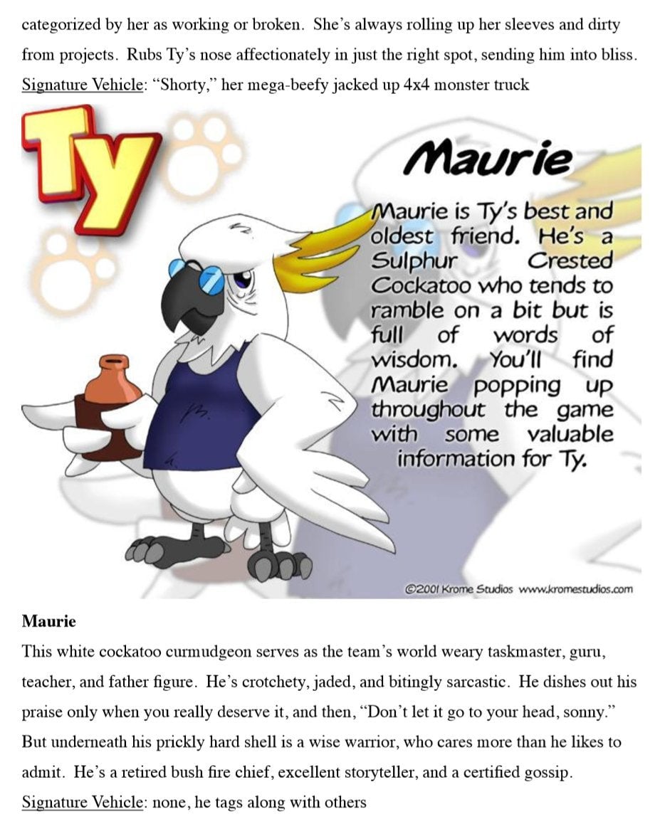 It’s an interesting peak into what could have been. Obviously the scripts would have been developed further if the series had gone into full production, but as it was this was enough to get the series optioned,” Passfield said. I tried to contact Lane Raichert, the voice director on all three Ty the Tasmanian Tiger games and developer of the TV show, but wasn’t able to get in touch before publication.