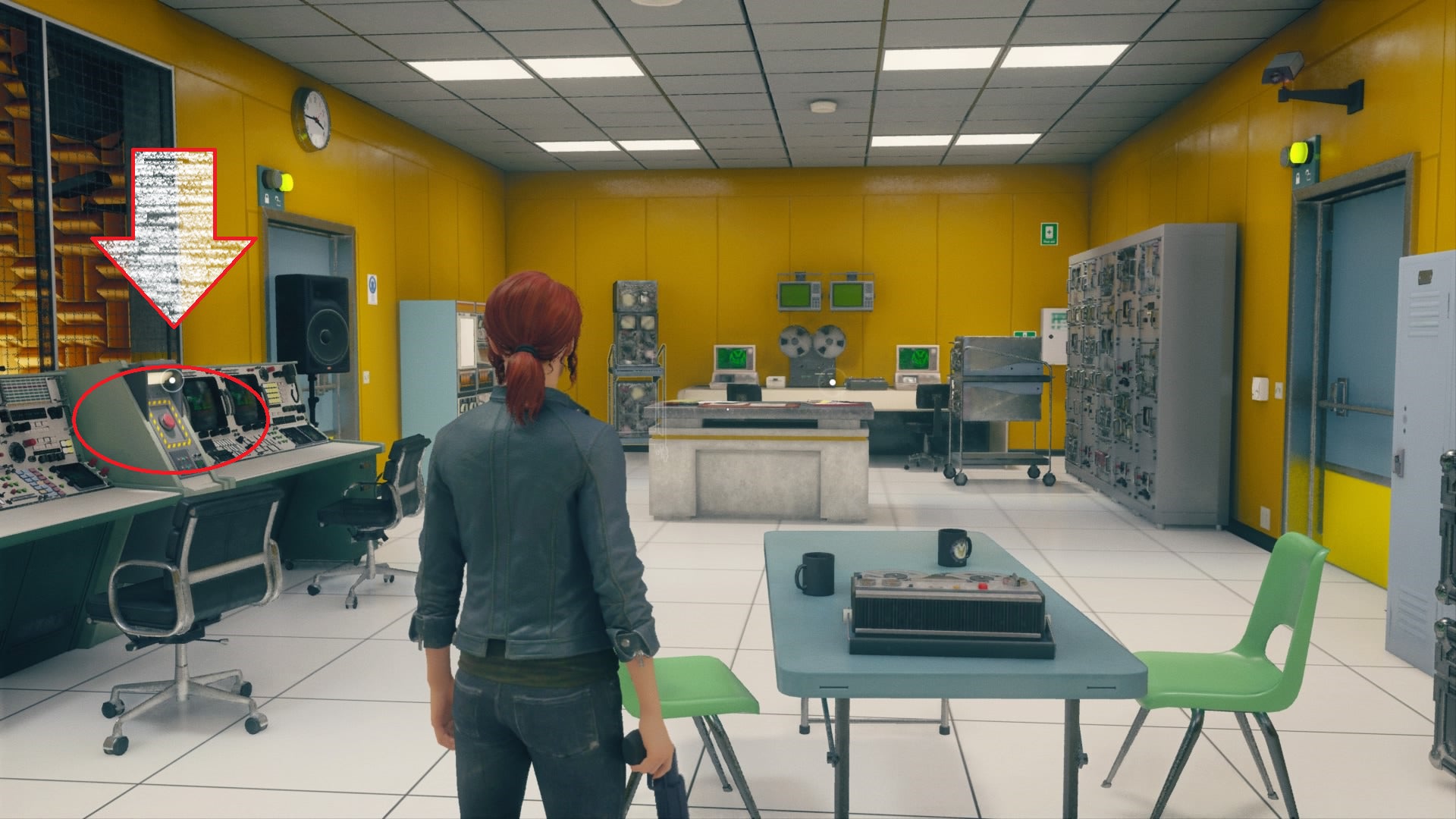 If you feel like you’re where you’re supposed to be and nothing is happening, make sure to comb over every desk and control panel for a button you can press before moving on.