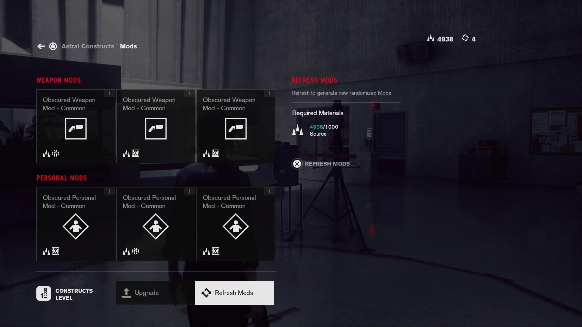 The materials you collect from killing enemies and opening chests can be spent on rolling for random new mods, but they are expensive and almost never as good as the ones you’ll find simply by playing the game. Instead, focus your materials on crafting new variants of your service weapon and increasing the number of mods it can hold.