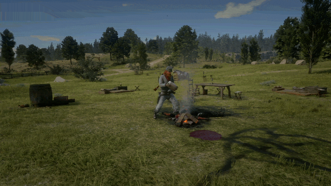 I was just hanging out in Red Dead Online with some friends. We were hunting and chatting. Suddenly, two random players started attacking us. We headed to my camp, where we would be safe from attacks and used an in-game feature to “parlay” with the gang, so they could no longer attack or kill us. Instead of just leaving the two men ran up to us and started twirling their guns and dancing.