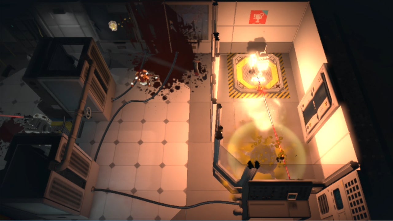 We reported last month on EA’s upcoming Warp, a top-down puzzler featuring Zero, a cute and cuddly little orange alien who makes humans (and anything else) explode violently into bloody goo. Today, we get to see Warp‘s gameplay in action! Really, there’s something deep-down comically satisfying in seeing a burbling little colorful G-rated guy pop…