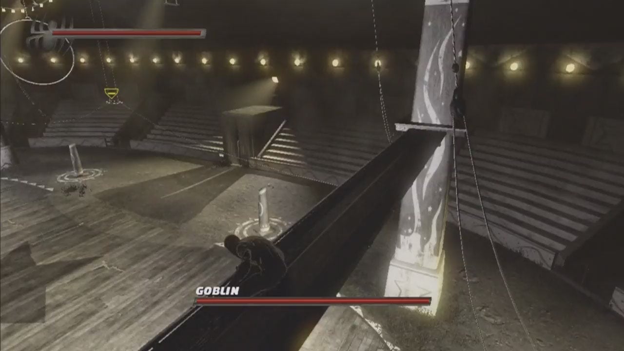 During the climactic battle with the Goblin in Spider-Man: Shattered Dimensions, Madam Web urges me to “look for areas of weakness.” I’d say my archenemy falling through the world and becoming untouchable counts. This clip is just one of many technical problems I had with my review copy of Spider-Man: Shattered Dimensions on the Xbox…