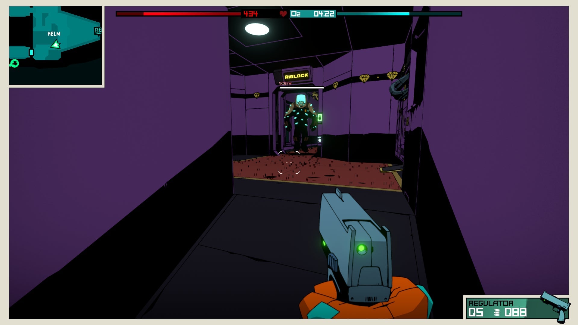 For starters, each ship only contains so much oxygen. Every second you explore, your oxygen is ticking down. With smaller ships, this isn’t usually a problem. But bigger and more elaborate vessels become harder to fully explore and with more enemies to dodge and rooms to search, it can become very easy to stop monitoring your oxygen. Then suddenly you might end up in a situation like I was in, where I was surrounded by tough enemies, low on health, nowhere near the exit and almost out of oxygen. Things didn’t end well for me in that scenario.