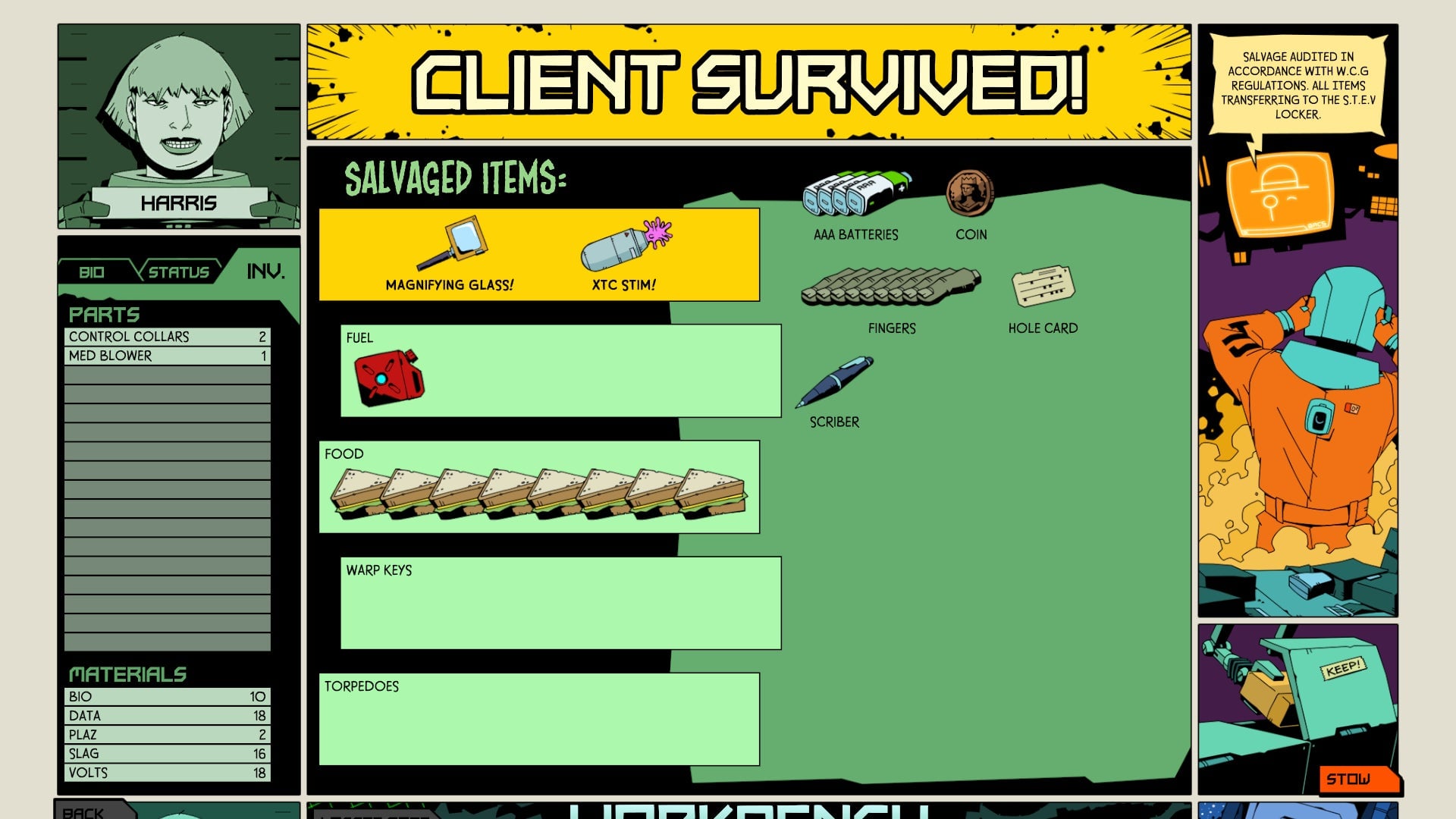 Void Bastards really leans into its comic book art style in some great ways. Enemies make sound effects, which are represented in the world via comic book inspired text pop-ups. Menus all feel ripped out of a digital comic book too. Void Bastards just looks and feels cool in more ways than a lot of other games I’ve played this year.