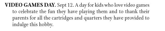 Who decreed today National Video Games Day? Who are you? Where did this day come from? Is this real life? Or could this holiday perhaps be fake?