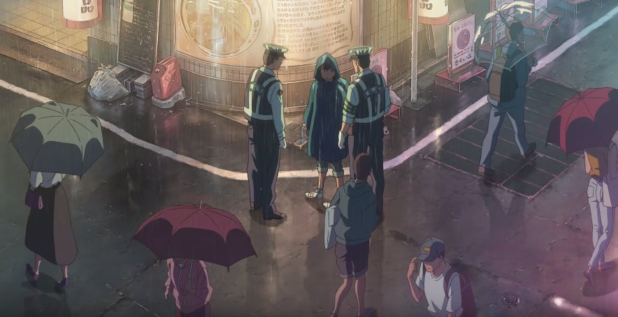 Hodaka starts applies for some part-time work, but the replies he gets are for jobs in fuzoku (the sex industry). He goes to a series of interviews, probably to manage one of those types of places, and gets rebuffed by yakuza types for being too young. With no options for work, he ends up on the street, tired and hungry. Itâs a stark view of Tokyo and one that isnât typically shown in mainstream anime or Japanese movies. This isnât the Tokyo of Your Name, and in that regard, it makes for a fascinating contrast.