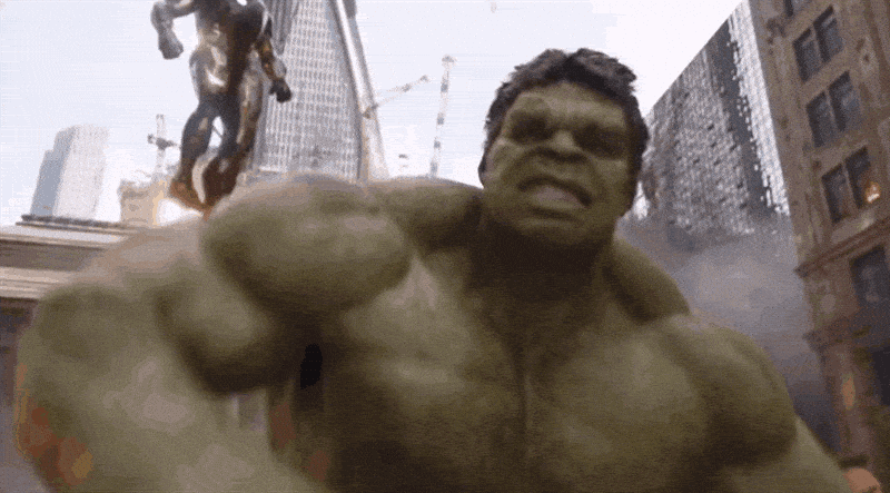 Bam. There’s the Avengers theme. It’s musically very simple, but when it finally arrives, it crashes down like the Hulk himself. It’s no coincidence that the scene in the gif above is accompanied by the purest, most emphatic rendition of that musical theme. It’s the climactic moment of the film, and the endpoint toward which the entire Marvel Cinematic Universe had been heading up to this point. The Avengers have assembled. This is it. The good guys are here, and they’re gonna win.